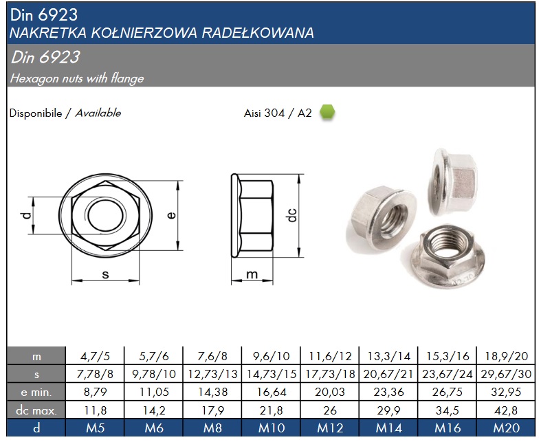 SKU: PV-K-MF-DIN 6923 NAKRĘTKA KOŁNIERZOWA M8 A2 ząbk. Kategoria: Tag: